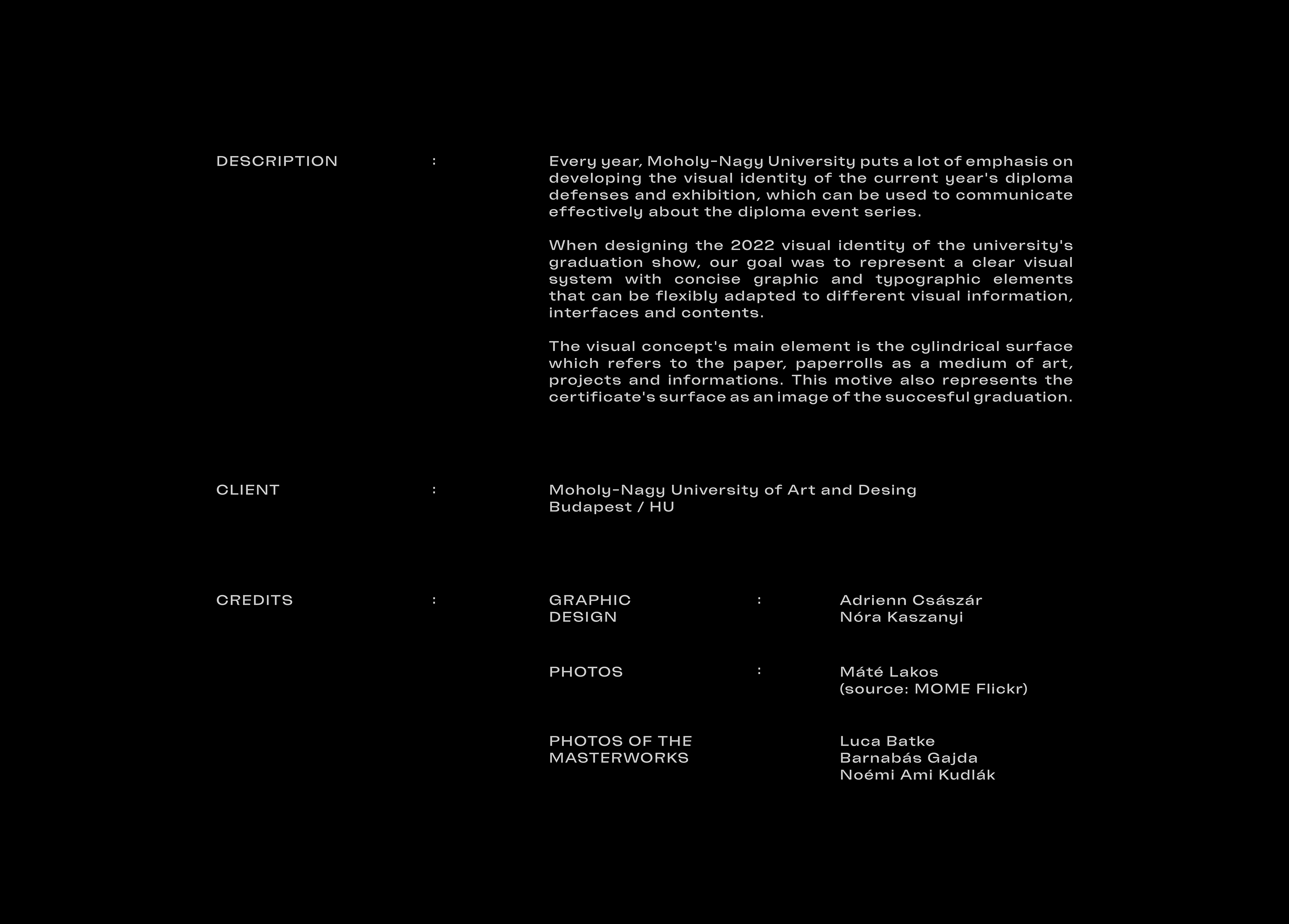 Visual Identity for MOME (Moholy-Nagy University of Art and Design, Budapest) Graduations show 2022